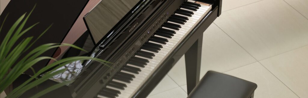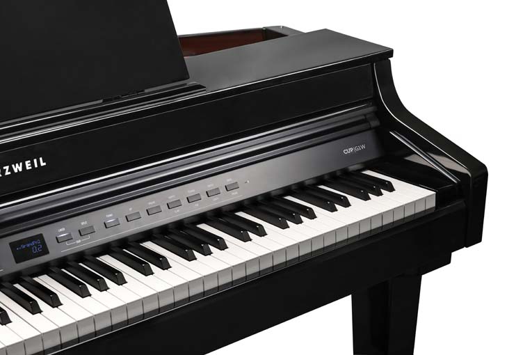 The CUP G1W is Kurzweil’s flagship mini grand piano, featuring an exclusive W1 Ivory “GT” Keybed and Kurzweil’s pro-level synthesizer technology and industry-leading samples to provide the rich feel of a concert grand, while a 4 speaker 50 watt sound system provides unparalleled sound quality.