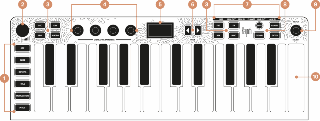 All synthesizer functions and parameters can be accessed quickly via the encoders with real time updates and information on the Xsynth display.